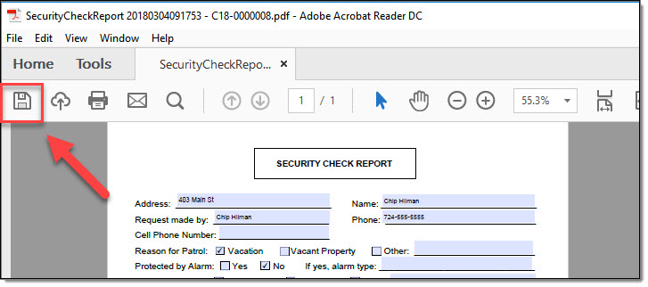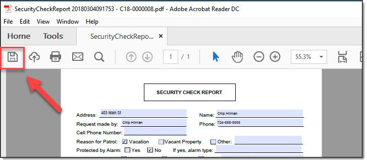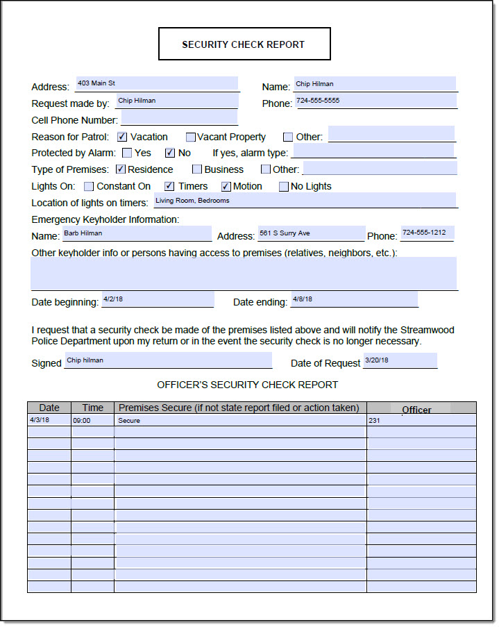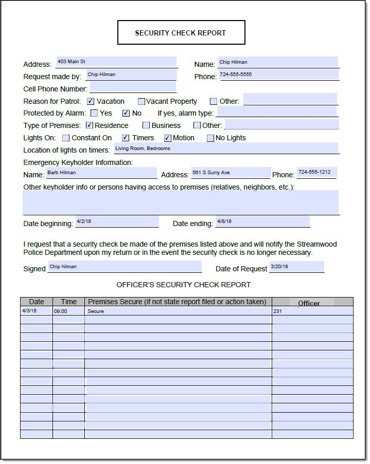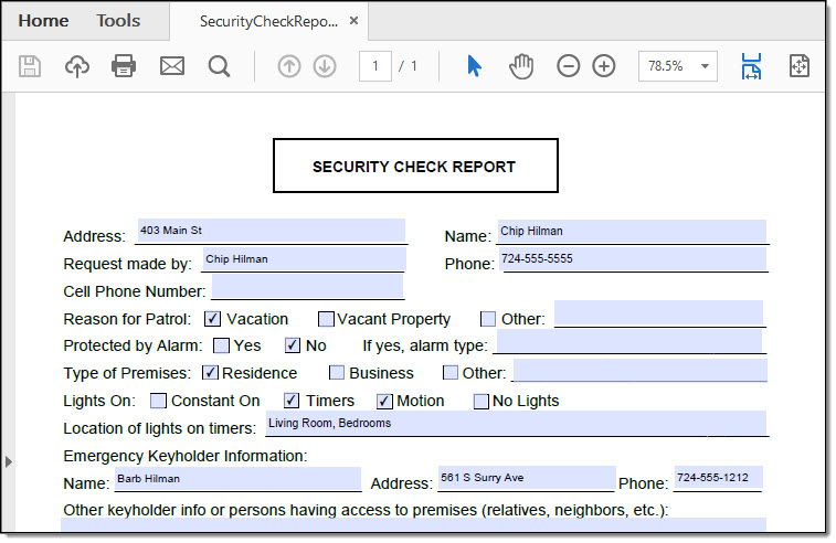 2. In this example, we have one form (Vacation Security Check Report). Select the form from the drop down list.
