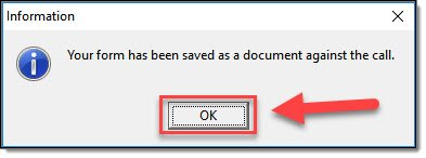 6. Close the program/form to return to the Add/Edit Call window. Select the “OK” button on the Information box.