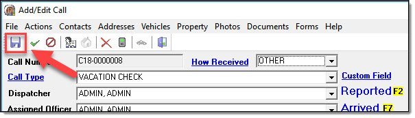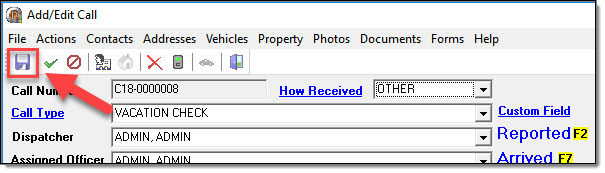 7. Select the “Save” button on the Add/Edit Call window to save the changes.