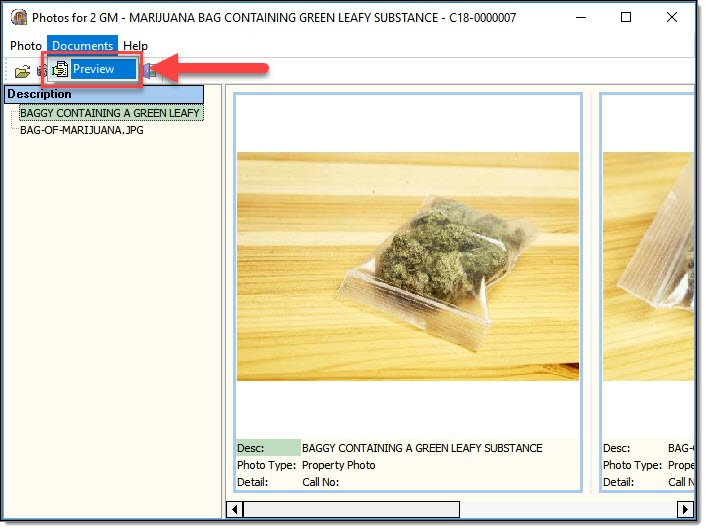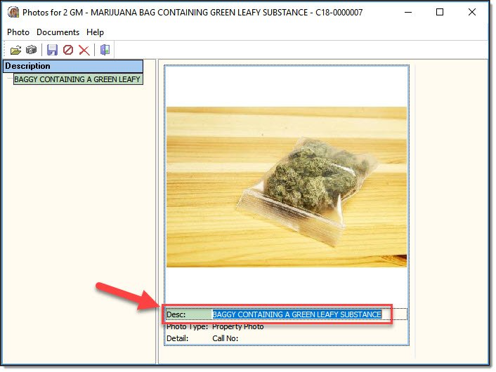 Users can attach photos to individual property items. If a call-for-service is escalated into a case, these photos will display on the Property page of the Case Report.