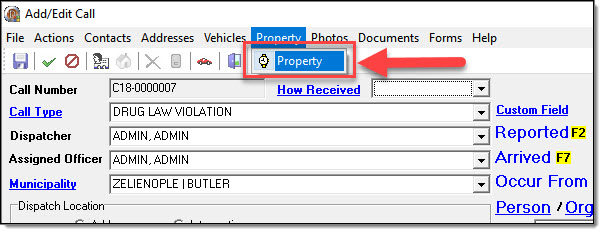 Property items can be linked to calls-for-service in the RMS. These property items can be given roles, values, photos, notes, etc. If the call-for-service is ever escalated into a full case report, the property items will automatically move into the Case Builder module.