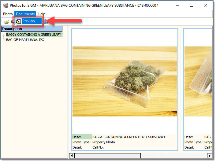 1. Once photos have been added (and saved) to the property item(s), select the “Preview” option from the Documents drop down list to view the print preview.