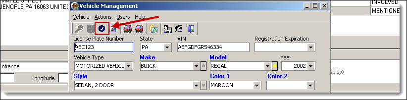 5. Follow steps 3a-4c from the Searching and Entering a New Vehicle section of the Vehicle Management chapter for details on saving a new vehicle record or choosing an existing vehicle record.
