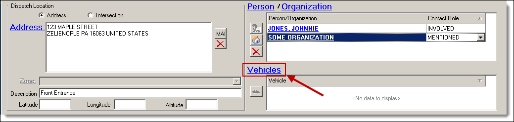 1. Click the blue word “Vehicles” to open the Contacts by Vehicle window.