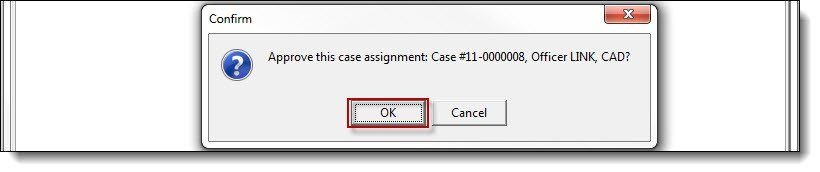 Approving a case assignment may result in the case temporarily displaying in the Approved Assignments tab. Refer to the Approved Assignments section of this chapter for details on the difference between approved assignments and approved cases. After approving a case assignment, a supervisor can assign a follow-up to the reporting officer, or any additional officer. To learn more about assigning follow-ups, refer to the “Assigning a Case Follow-up” chapter.