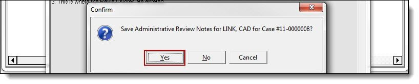 2e. Confirm the review notes by clicking the “Yes” button on the Confirmation window.