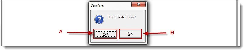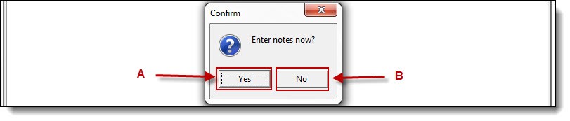 2c. If the supervisor wishes to enter review notes for the officer, click the “Yes” button (A); otherwise click the “No” button (B) on the Confirmation window.