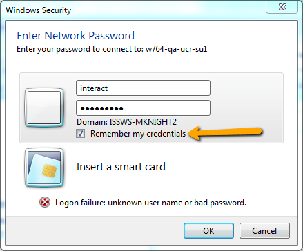 - If the service is reading from a network share please ensure to establish connectivity to the server by connecting to the share. To connect to the share click start —-> run and then enter the share name \\mike-knight-rulez\cadfiles\. When you receive the following prompt please check remember password to prevent unnecessary outages.