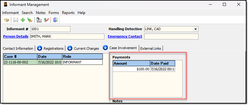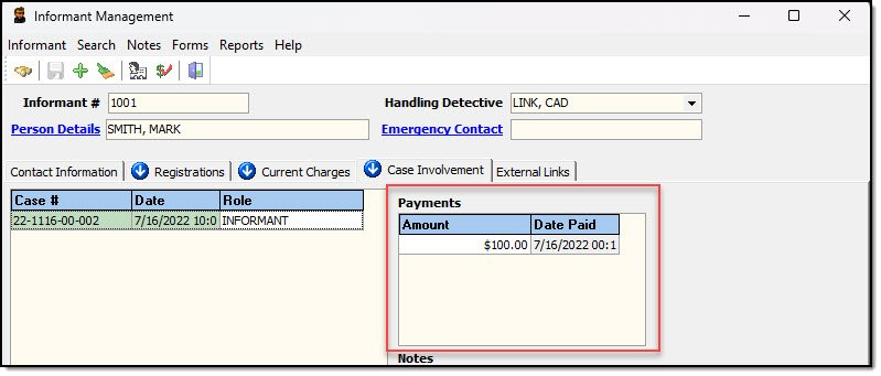 4. Payment information will be displayed under the Payments box on the Case Involvement tab.