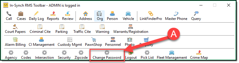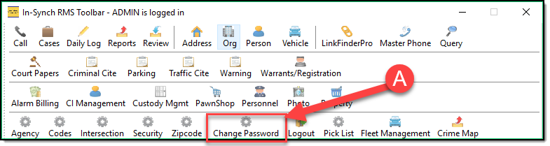 To access the Change Password Module click the Icon (A) on the toolbar.