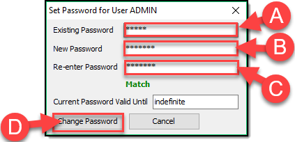 - Confirm by clicking Change Password (D)