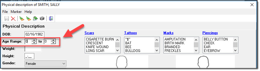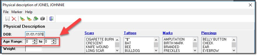 Physical Description Page: Age range of offender (option in addition to DOB above).