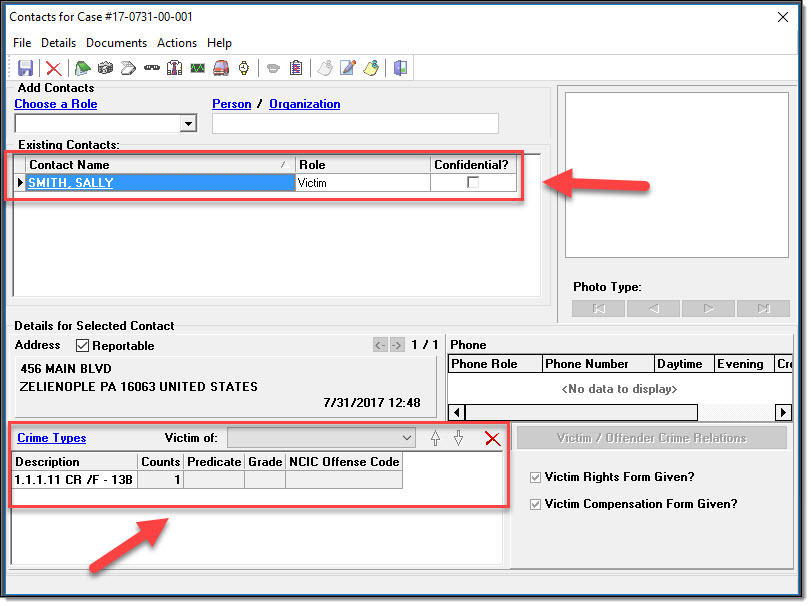 Contact Window: A contact with the role of victim, and the victim connected to at least one offense.