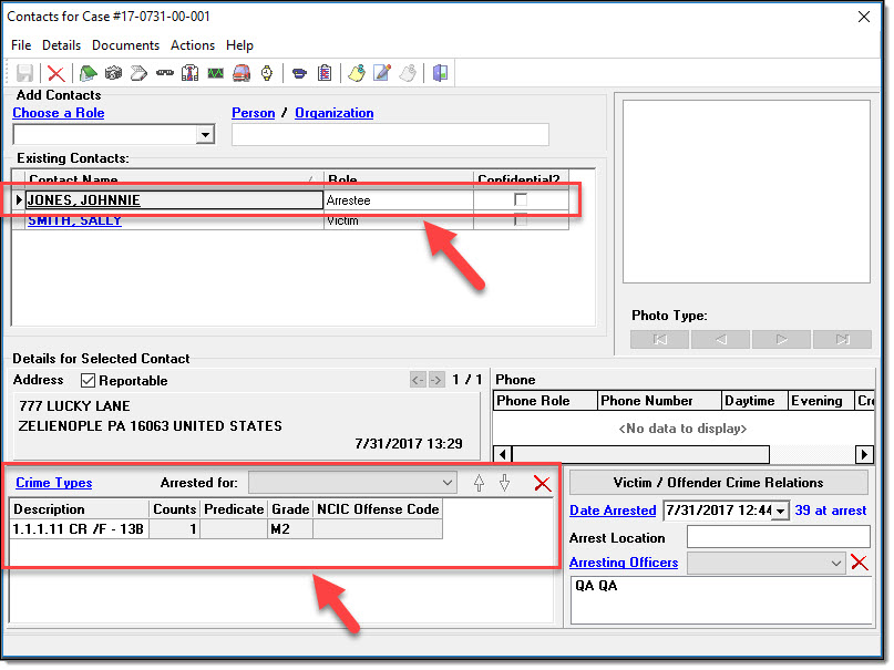 If Offender: Contact Window: A contact with the role of arrestee, and the arrestee connected to at least one offense.