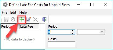 2. With the ‘Define Late Fee Costs for Unpaid Fines’ module open, press the ‘Add’ button to start setting up the costs for your crime codes.