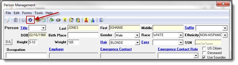 5. Once a person record has been created or chosen, click the “Choose” button at the top of the Person Management window.