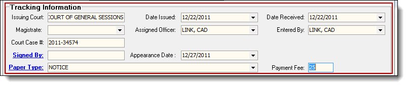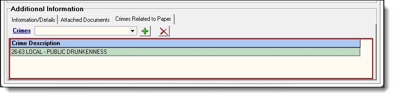 12. The Crimes Related to Paper tab has a field for linking crimes codes to the court paper.