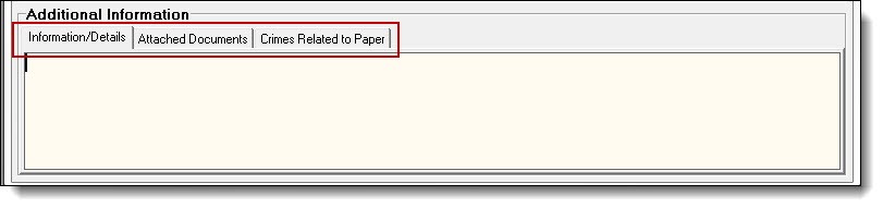 9. The fourth section is for recording any additional information. There are tabs for recording details/information, attaching external documents, and recording crimes related to the paper.