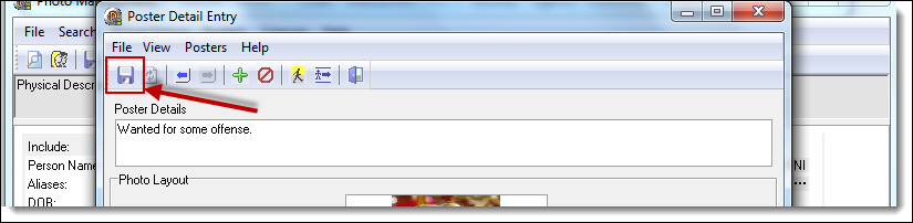 - If a Wanted Person poster already exists for the person, you can create additional posters by clicking the “Add” button from the Poster Detail Entry window.