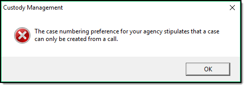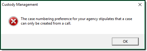Only certain numbering methods allow the case creation from within Custody Management. The others will receive the following message. We feel it is better, when possible, to have your case work done before you assign the custody record to a case.