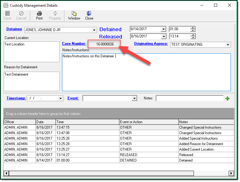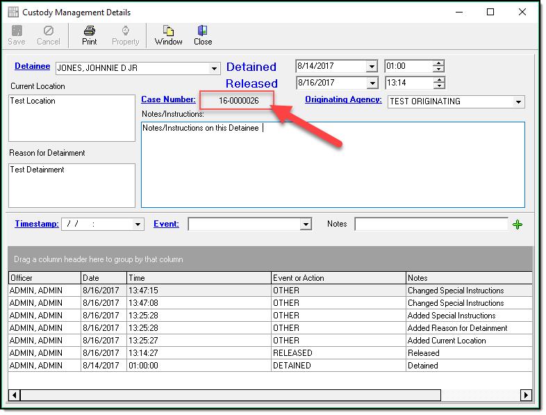 Once you have linked the Custody Record to a case, you will now be able to see the case number on your Custody details screen.