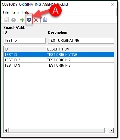 To assign Pick List Values to be available in the Originating Agency drop-down list. Click the blue words Originating Agency (A) to launch the Picklist editor.