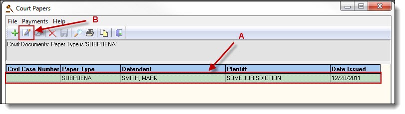 1. Highlight the paper in the results grid (A), and then click the “Edit” button (B).