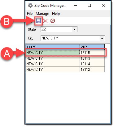 1. To edit an existing Zip Code, filter by the State and/or City.