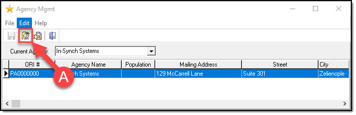 Most of the Agency information will be preconfigured before installation, but we understand that, with time, agencies move, administration changes, and staff levels fluctuate. These are pieces of information that can be changed without issue. To start, press the ‘Edit Agency Info’ button (A).