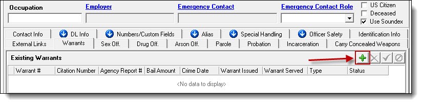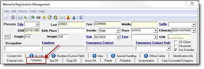 2. Once a person record has been created or chosen, click the Warrants tab.