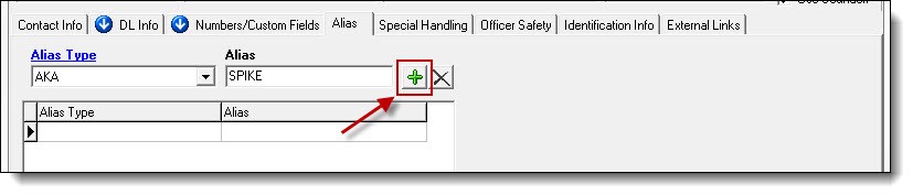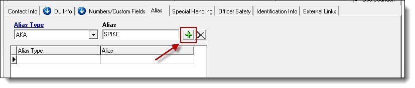 If a person’s alias is Spike, enter “Spike” into the Alias field. However, if the person has a full alias name, enter the name following the agency’s internal requirements.