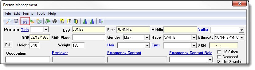 4. Save the changes to the person by clicking the “Save” button at the top of the Person Management window.