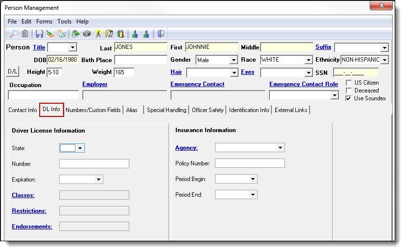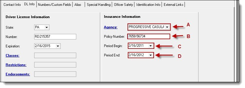 Entering Driver’s License and Insurance Information