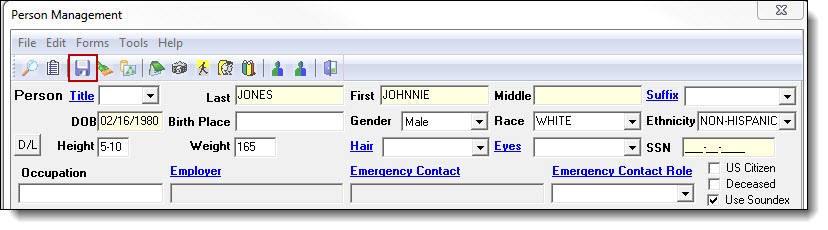 4. Save the changes to the person by clicking the “Save” button at the top of the Person Management window.