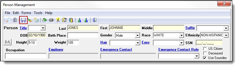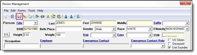 4. Save the changes to the person, by clicking on the “Save” button at the top of the Person Management window.