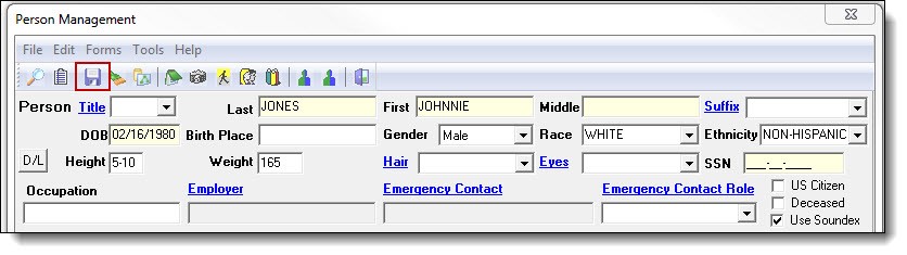 3. Save the changes to the person by clicking the “Save” button at the top of the Person Management window.