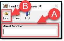 2. Enter the arrest number (A), then click the “Find” button (B).