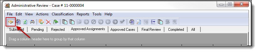 1. To search for a particular case, click the “Find” button from the Admin Review toolbar.