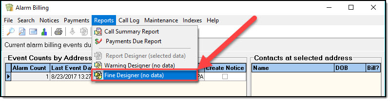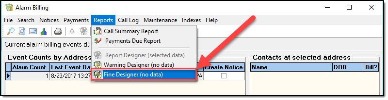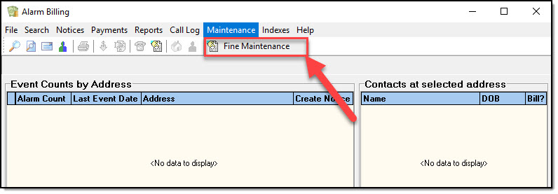 1. From the Alarm Billing Module, choose the Maintenance drop down, and select ‘Fine Maintenance’.