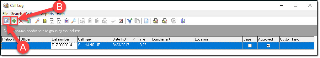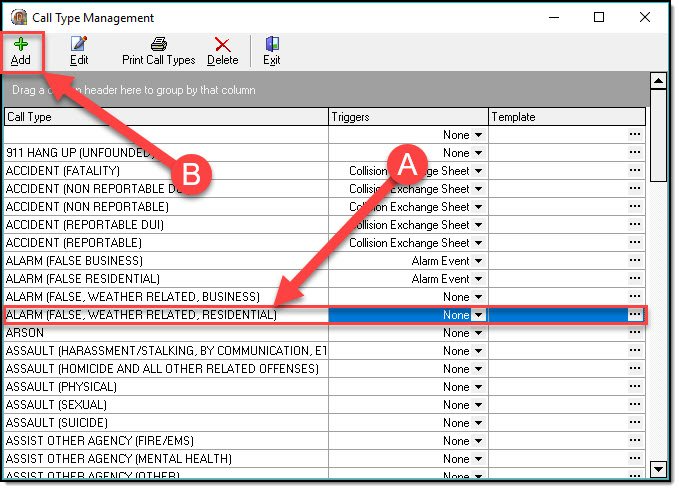 4. Select an existing Call Type (A), or add a new Call Type (B).