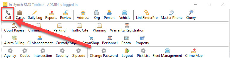 1. Launch Call Log by pressing the Call Log button on the main RMS toolbar.
