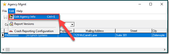 2. Open the Agency Info, by select ‘Edit Agency Info’ from the Edit drop down.