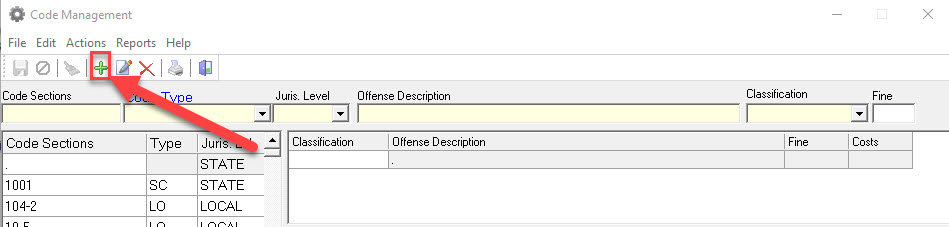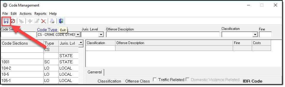 8. To save all of the entries and add the new offense to the Code Management module, click the “Save” button on the Code Management window.