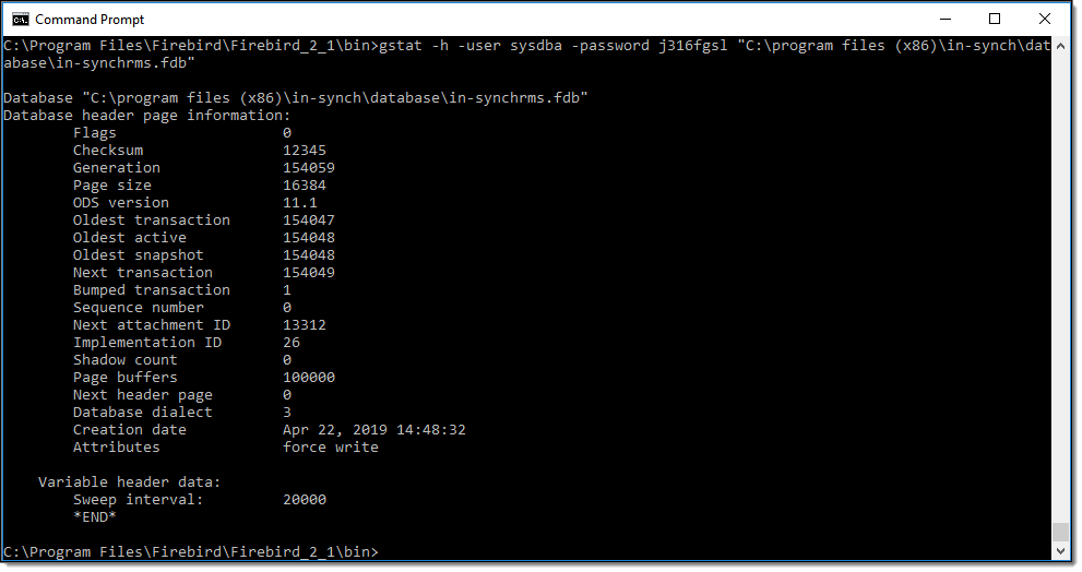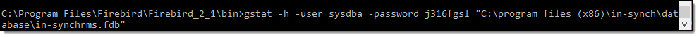 From the Firebird\…\bin directory run the following command: gstat -h -user sysdba -password j316fgsl “database path”