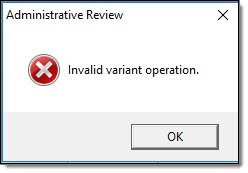 Occasionally, users may experience an “Invalid variant operation” error when trying to enter IBR information.