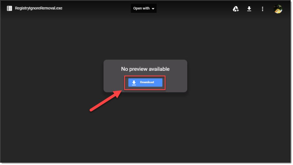 - Download the RegistryIgnoreRemoval tool from the following link: