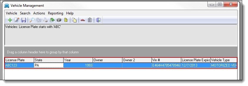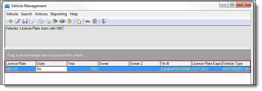 1. Double click the vehicle from the Vehicle Management grid to reopen the details window.