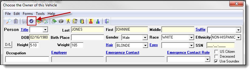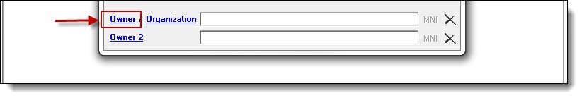 The previous example showed how to link a person as the vehicle’s owner. If the owner is a business or organization, click the word “Organization” and follow steps 3a-4a from the Searching and Entering an Organization section of the Organization Management chapter for instructions on saving a new organization record or choosing an existing organization record.