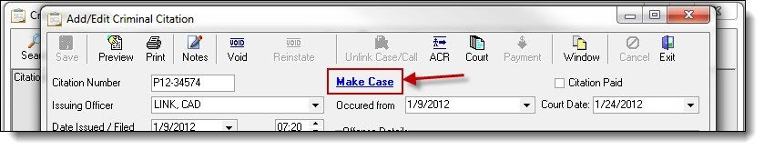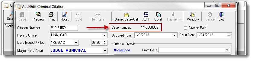 3. After selecting one of the Create Case or Assign choices, the corresponding call or case number will display on the citation.