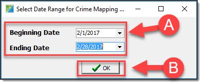Enter a date range (A) and then select the “OK” button (B).